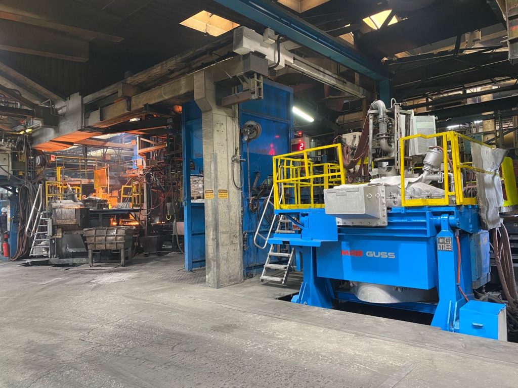 Die vollautomatische Hansberg Formanlage hat ein Formkastenformat von 760 x 560 x 180/190 und ist mit 15 Sekunden eine sehr schnell taktende Anlage. Bis zu 220 Kästen pro Stunde werden mittels zweier getrennt voneinander genutzten Vergießöfen gegossen. Eine Bildüberwachung der geformten Kästen sowie eine laserüberwachte Gießsteuerung und Impfmittelüberwachung stellen die qualitätswichtigen Prozessschritte sicher.
